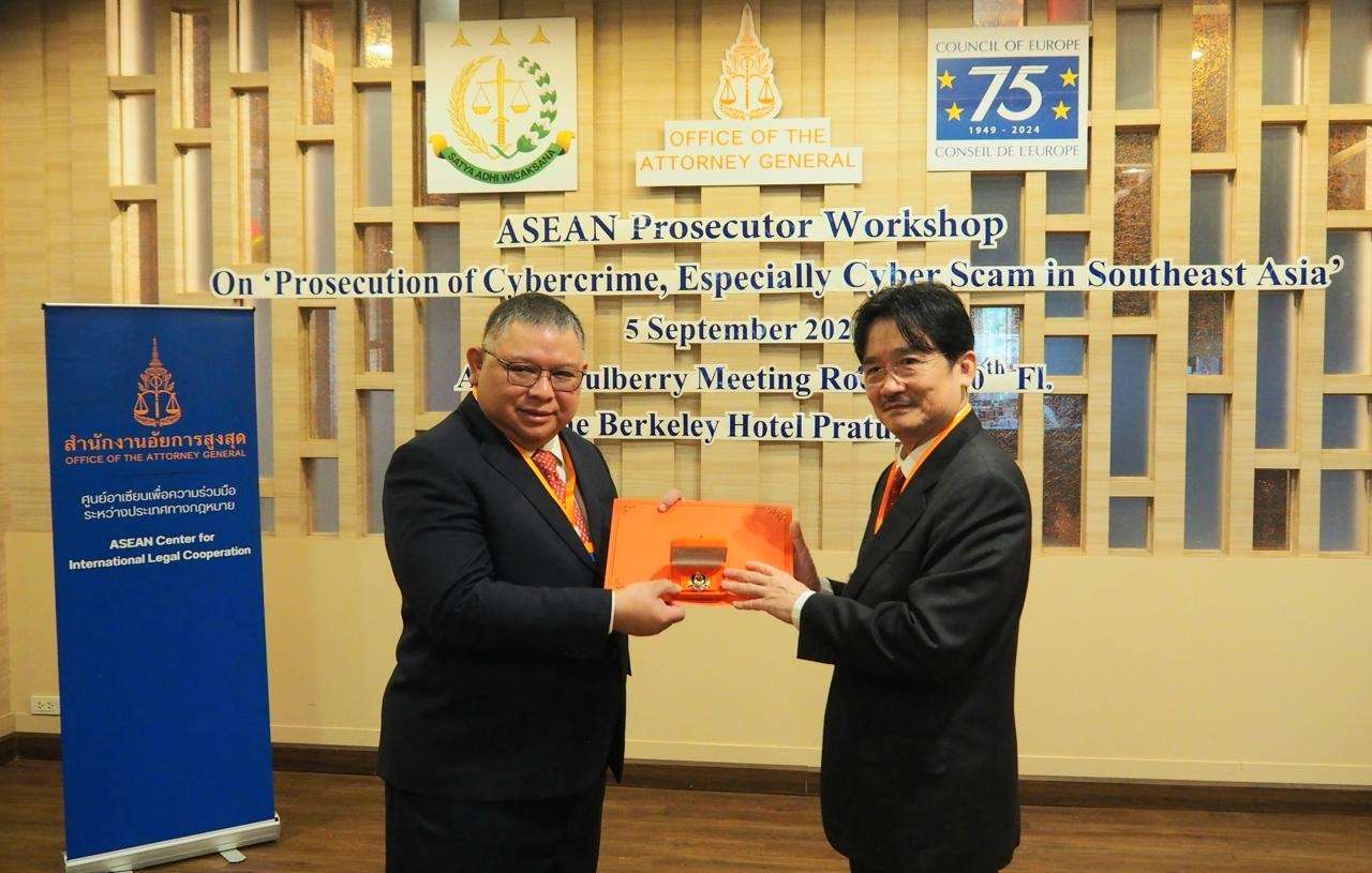 Bangkok, 5 September 2024 – Kejaksaan Agung Kerajaan Thailand memberikan penghargaan tanda jasa Yokkrabat kepada dua pejabat tinggi Kejaksaan Republik Indonesia, yakni Jaksa Agung Muda Intelijen (JAM-Intelijen) Prof. Dr. Reda Manthovani dan Jaksa Agung Muda Perdata dan Tata Usaha Negara (JAM-Datun) Dr. R. Narendra Jatna. Penghargaan ini diserahkan dalam acara ASEAN Prosecutor Workshop yang digelar di Barkeley Hotel, Bangkok, Thailand.