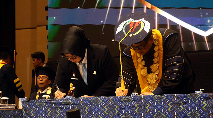 Penandatanganan dilakukan oleh Kepala Kanwil Kemenkumham Bali Eem Nurmanah, dan Rektor Undiknas Nyoman Sri Subawa, disaksikan oleh civitas akademika, para wisudawan, serta undangan dari instansi pemerintah dan mitra strategis.