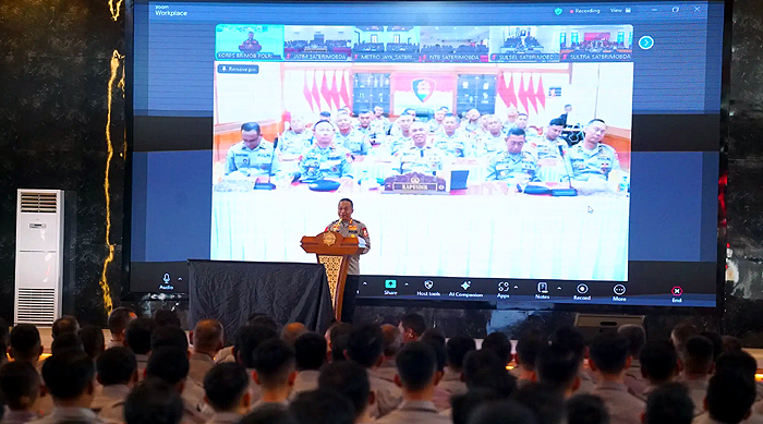 Depok – Komandan Korps Brigade Mobil Polri Komjen Pol Ramdani Hidayat memberikan arahan khusus kepada 551 calon peserta didik Pendidikan Alih Golongan (PAG) dan 2.210 calon peserta didik Sekolah Bintara Polri (SBP) tahun 2025.
